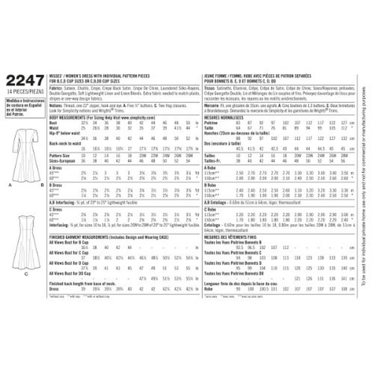 12+ Simplicity Sewing Patterns Size Chart